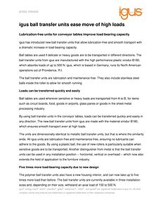 igus has introduced new ball transfer units that allow self-lubricating and smooth transport with a dramatic increase in load-bearing capacity.