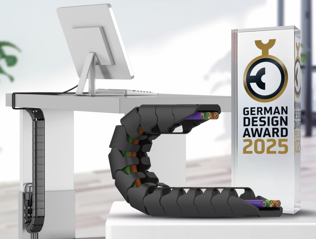 The rise in hybrid working has highlighted the need for comfortable home offices and height-adjustable desks, but organising cables from multiple sources becomes a functional and aesthetic challenge. The Office Chain OCO is a compact and stylish energy chain for cable routing, which has been awarded the German Design Award 2025.